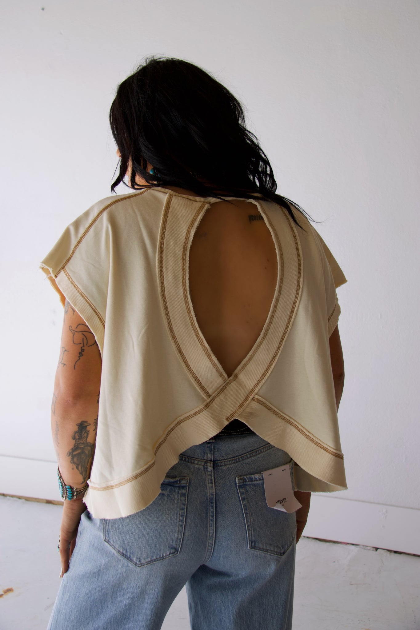 Oversized crop fit, with an open back