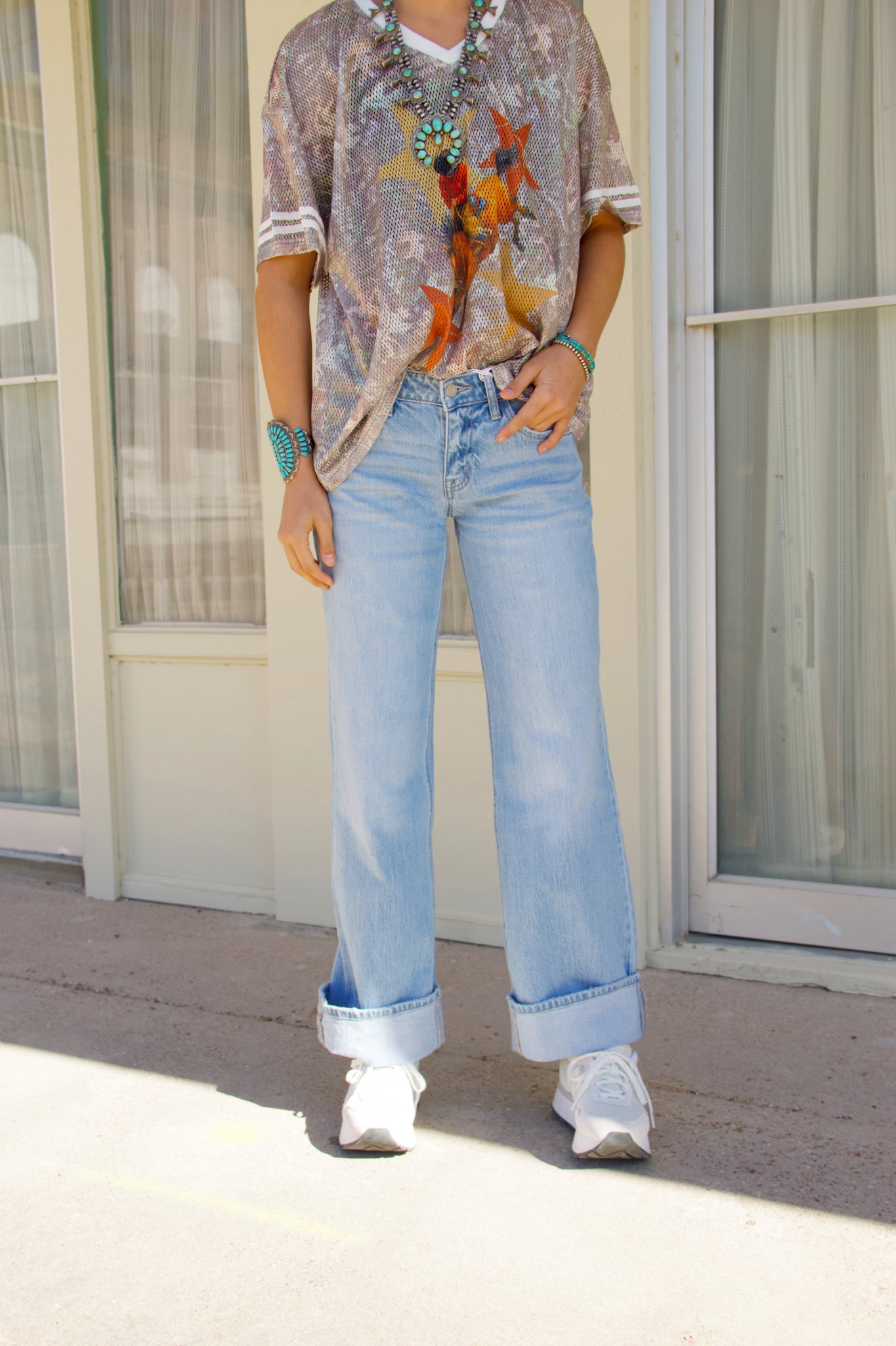 These jeans are the same fit as our previous Vervet we had in stock, just a lower rise. They are in between straight leg and wide leg, and fit true to size